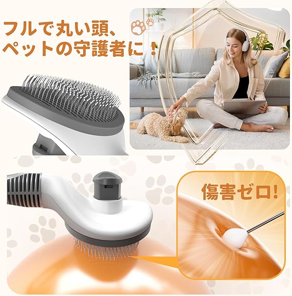 Greneo 犬・猫 ブラシ【ペットが大好きな魔法のブラシ】丸頭ビーズピン 痛くない 犬 猫 毛取り簡単 ワンプッシュ式 ヒーリングスリッカーブラシ 肌ケア マッサージ[独創的な中空デザイン]収納便利 ペットブラシ 長毛&短毛種兼用くし 猫・犬適用(グレー) | Pettopoint