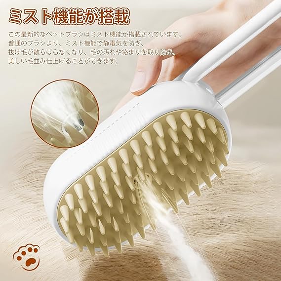 【Ylfcly 2024新 ペット ブラシ】 蒸し猫 ブラシ ペット用ブラシブラシ 犬 抜け毛取り 噴霧式 360°回転 USB充電式 スリッカーブラシ マッサージ 猫くし 犬くし ペットグルーミングブラシ 長毛 短毛 猫用品 犬用品 猫犬兼用 (ホワイト) | Pettopoint
