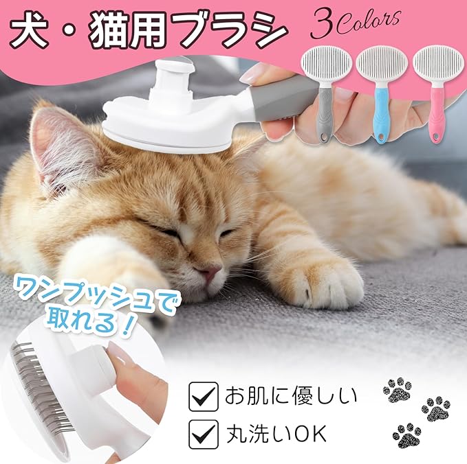 【ワンプッシュで簡単クリーニング】ワンプッシュで簡単に抜け毛を除去できます。面倒なブラシのお手入れが簡単に! 水洗い可能で清潔にお使いいただけます。洗った後はよく乾燥させ保管してください。