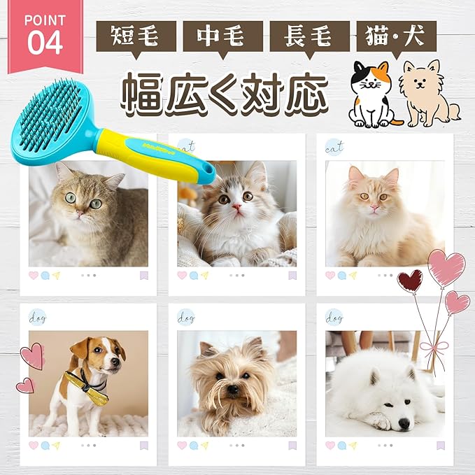 脱毛と絡み解消:柔軟なピンが毛のもつれを解消し、脱毛を助けることで、常にペットの毛を清潔で健康的に保ちます。