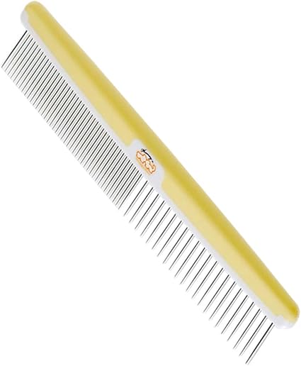 毛量や部位によって使い分ける両目グシ。粗目でほぐし、細目で毛並みを整える。