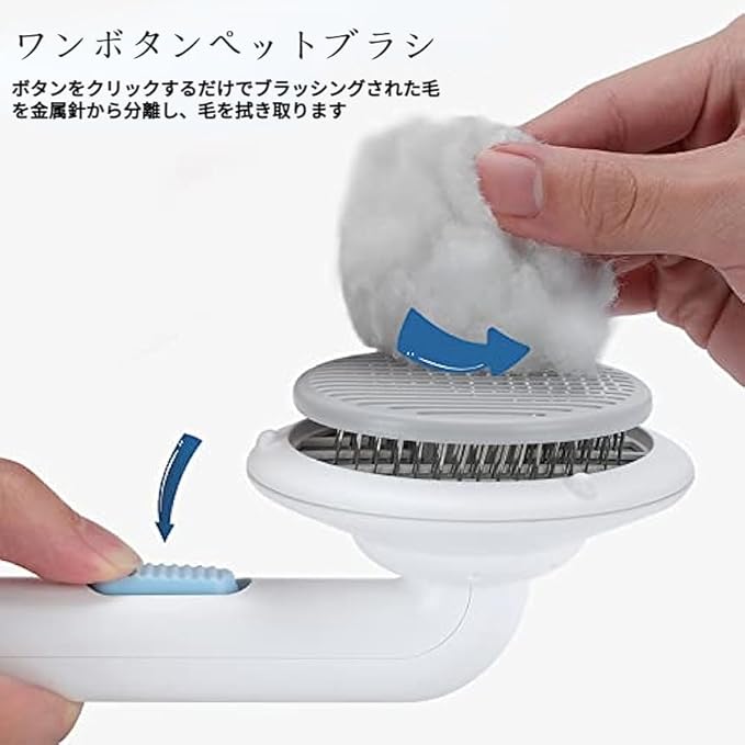 【ワンボタンペットブラシ】ペットをブラッシングした後、ボタンをクリックするだけでブラッシングされた毛を金属針から分離し、毛を拭き取ります。 前面のペットブラシ脱毛アップグレードボタンにより時間を節約し、爪が長い人でも猫ブラシの掃除が簡単になります。