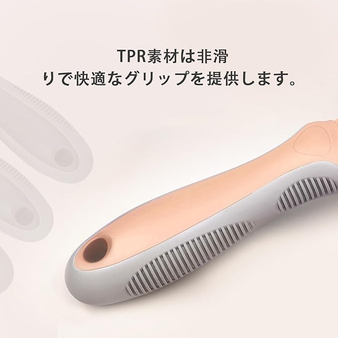 快適なマッサージ体験 - ブラシの先端は丸くなっており、ペットの肌を優しくマッサージすることができます。これにより、ペットの血行を促進し、ストレスを軽減します。また、防滑加工されたハンドルもあり、使用中に滑りにくくなっています。