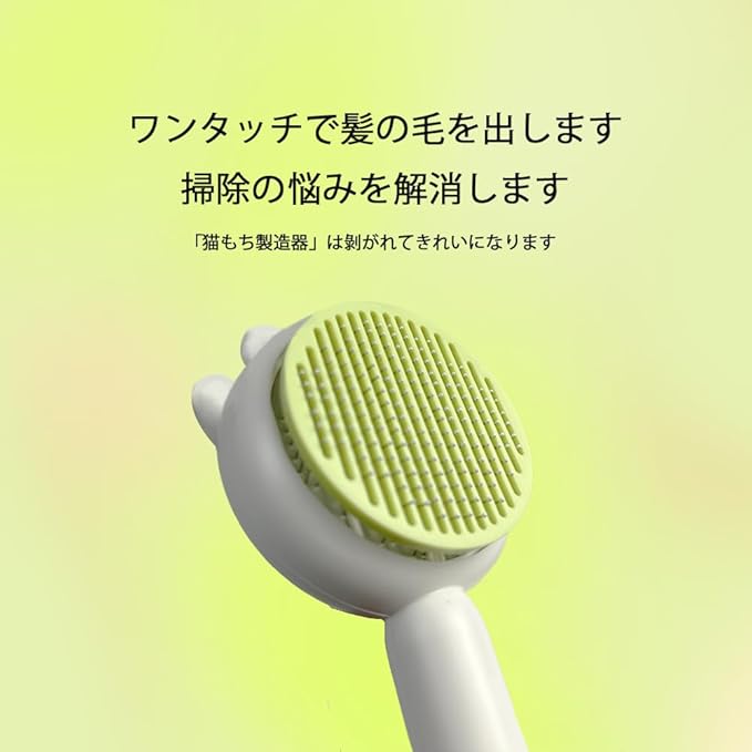 ペットブラシ スリッカーブラシ 猫 ペット用ブラシ [ワンタッチ】ブラシ 押し付けタイプ 毛の除去・洗浄 マッサージ 痛くない 一度に洗える 肌にやさしい 猫用 ミディアムコート ロングヘアー(卵黄色) (ミルクホワイト) | Pettopoint