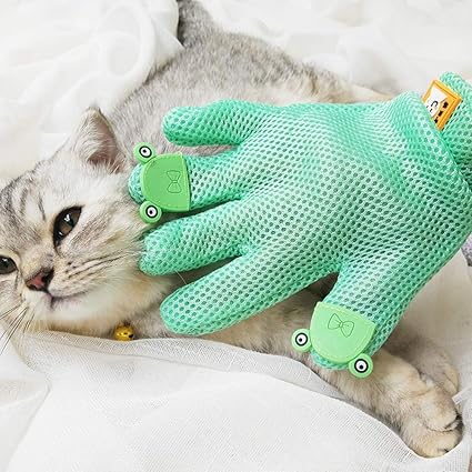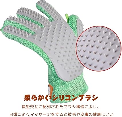 ペットブラシ グルーミング手袋 マッサージブラシ グローブ 抜け毛グルーミング用 入浴ブラシ 抜け毛取り 猫用 犬用 お手入れグローブ 右手用 おもちゃセット付き (グリーン) | Pettopoint