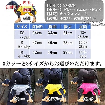 キャリーバッグにもなる歩行補助介護用ハーネスです。カラーはグレー、イエロー、ピンクの3カラーから、サイズはXS、S、Mの3サイズからお選びいただけます。