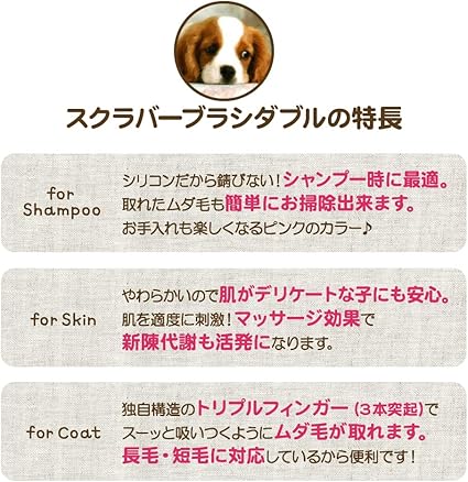 独自の構造トリプルフィンガー(3本の突起)でしつこくからんだ抜け毛もすばやくきれいに。 長毛にも短毛にも(両面)使えるダブルタイプ。