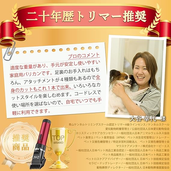 【20年プロトリマー推奨】 ︎ パワフルで静か:効率的で騒音が少なく、振動が抑えられたデザインです。トリミングの最中にペットが驚いて怖がってしまうことはなく、楽しいグルーミングが実現します。