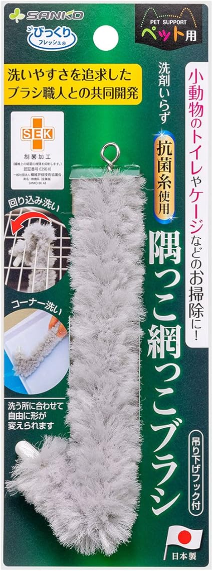 サンコー (SANKO) 隅っこ網っこブラシ 全長約17cm 日本製 水だけで汚れが落とせる 小動物用 尿石落とし 鳥の糞 トイレ ケージ 掃除 おそうじ BA-86