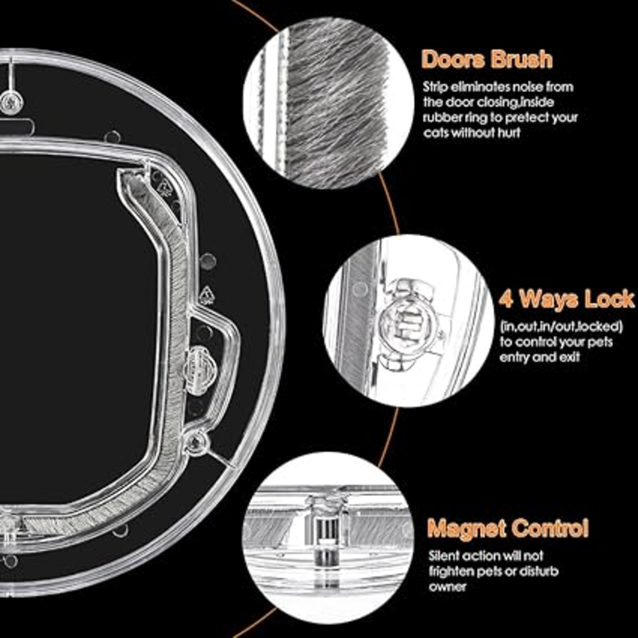4ウェイロックデュアルノブスタイルのロックを備えた猫のフラップは、ペットを制御するために、オープン、ロック、インのみ猫は出入りはできますが出入り、アウトのみ猫は出入りはできませんの4方向モードを提供しますあなたの家に出入りする