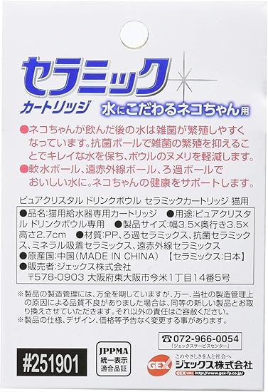 GEX ピュアクリスタル ドリンクボウル セラミックカートリッジ 抗菌・軟水・遠赤外線ボール配合 猫用 2個[約2ヵ月分]