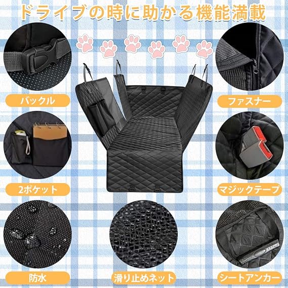 ペット用ドライブシート トランクマット ペット用品 犬 車用ペットシート カー用品 多機能ノンスリップマット 車後部座席 車載カバー シートベルトカバー 防水シート 滑り止め 汚れに強い 水洗い可能 取り付け簡単 折り畳み式 全車種 全種犬用猫用 アウトドアレジャー 旅行 | Pettopoint