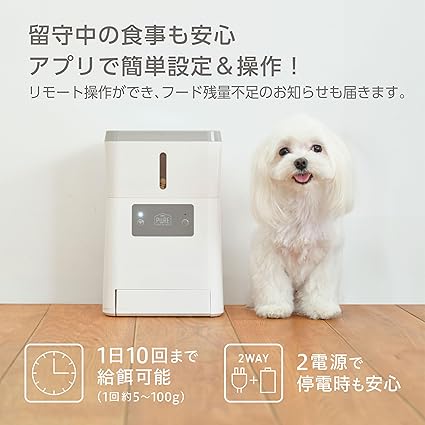 GEX 【 PURE 】 PET AUTO FEEDER 犬猫用自動給餌器 スマホで管理 1日最大10回5g単位の細かな設定 2電源で安心 清潔フードタンク丸洗い PPAF01-WH 【Wifi】 | Pettopoint