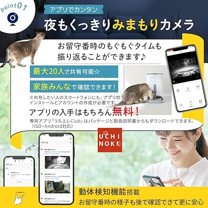 夜の暗い部屋でも犬猫がクッキリみえる、暗視カメラ付き自動給餌器です。フードト
