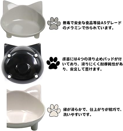【高品質素材】無毒で安全なA5食品級メラミン材料で作られており、表面は滑らかで耐久性があります。底部には滑り止めの設計が施されており、猫が鼻をつけて食事をしても滑ることはありません。