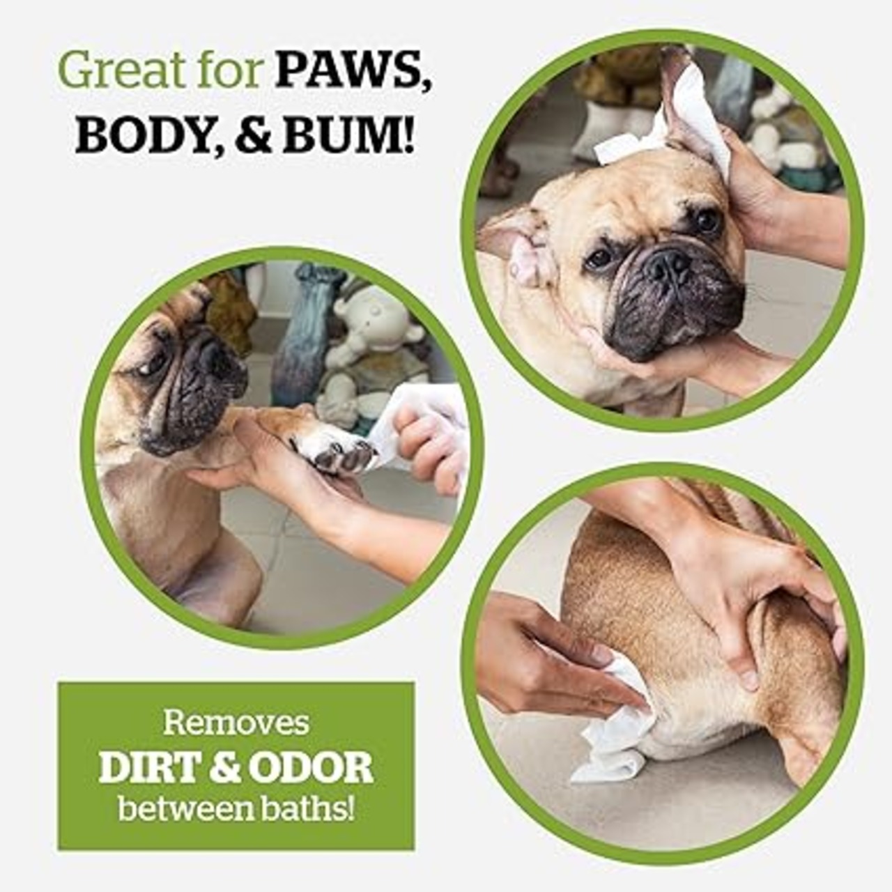 コンディショニング成分: アロエベラ、ビタミンE、ハワイアンアワプヒが、コートに健康的な輝きを与えつつクリーンでフレッシュにし、コンディションします。風呂の合間に足跡、体、お尻の臭い、汚れ、フケを拭き取るのに最適。