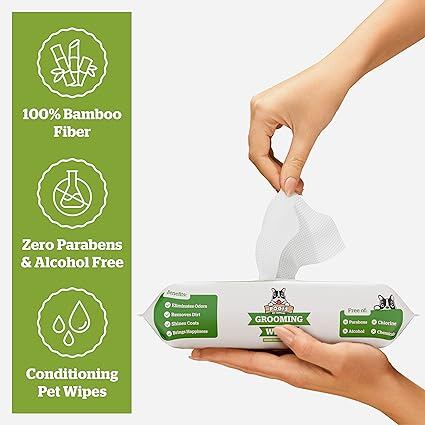 コンディショニング成分: アロエベラ、ビタミンE、ハワイアンアワプヒが、コートに健康的な輝きを与えつつクリーンでフレッシュにし、コンディションします。風呂の合間に足跡、体、お尻の臭い、汚れ、フケを拭き取るのに最適。