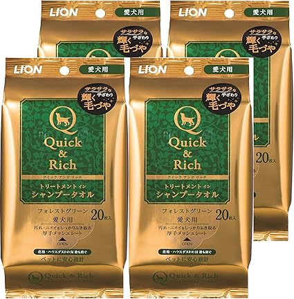 ライオン クイック&リッチ トリートメントイン シャンプータオル 愛犬用 フォレストグリーン 20枚入×4個 LIONPET