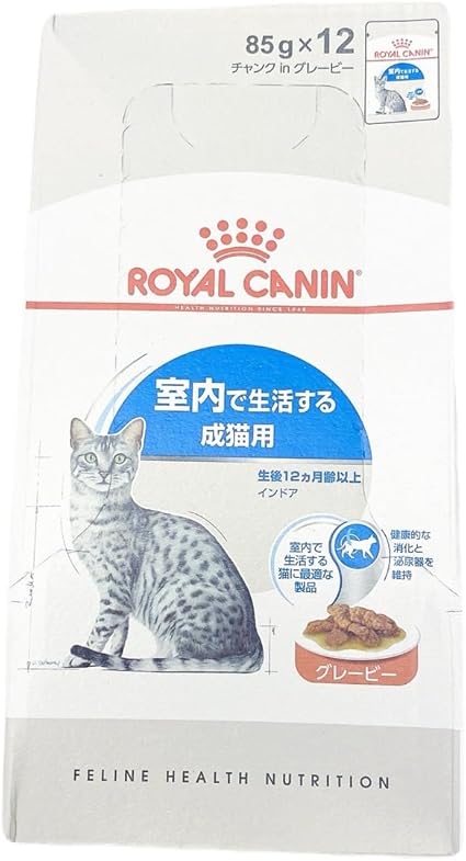 ロイヤルカナン インドア グレービー 猫用 セット (室内で生活する成猫専用) オリジナルウェットティッシュ付 (85g 12個) | Pettopoint