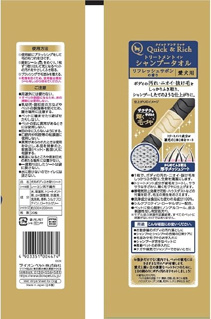 ライオン クイック&リッチ トリートメントイン シャンプータオル 愛犬用 リフレッシュサボン 20枚入×4個 LIONPET