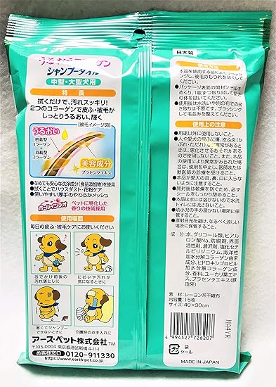 お徳用15枚入×3個セット コラーゲンとヒアルロン酸の保湿効果で皮ふ・被毛にうるおいを与え、サラサラに なめても安心な洗浄成分(食品添加物)を使用