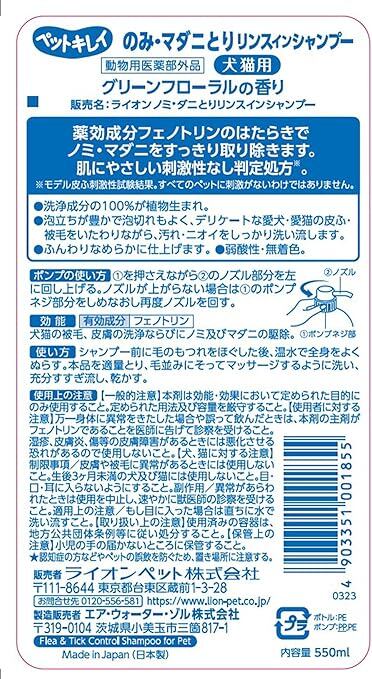 ライオン ペットキレイ のみ・マダニとり リンスインシャンプー 犬猫用グリーンフローラルの香り ポンプ 550mLx2個パック まとめ買い LIONPET | Pettopoint