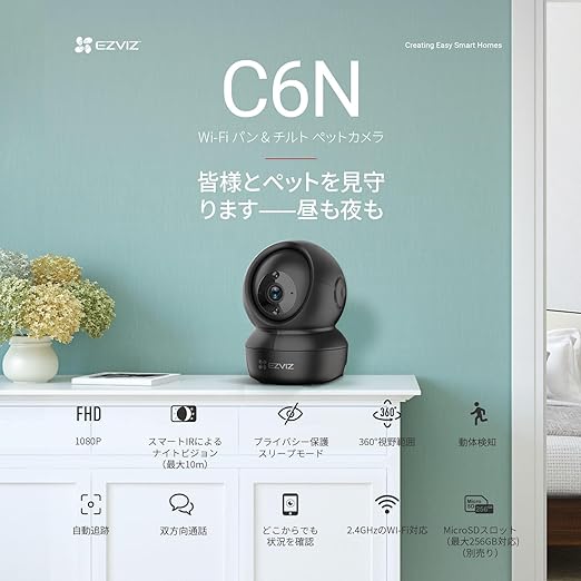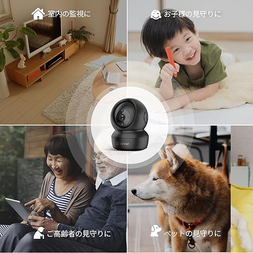 EZVIZ ペットカメラ 見守りカメラ 監視カメラ 防犯カメラ 室内 24時間 留守番カメラ ウェブカメラ 1080P 360度カメラ スマートカメラ 遠隔カメラ 介護カメラ 赤ちゃん 子供 犬 猫 動物カメラ ベビーモニター 赤外線暗視 動体検知 自動追跡 iphone スマホで見る 会話できる 音声録音 アレクサ スリープモード 2.4GHzのWiFi対応 C6N ブラック | Pettopoint